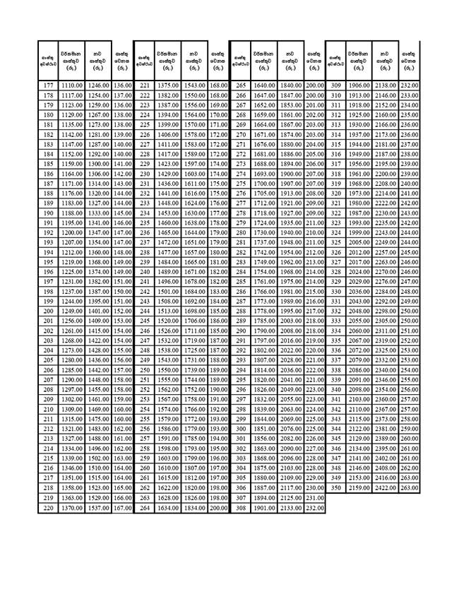 ඒ අනුව රුපියල් 27ක්ව පැවති අවම බස් ගාස්තුව රුපියල් 30ක් දක්වා ඉහළ ගොස් ඇති අතර, අවසන් ගාස්තුව ලෙස පැවති රු 2,159 බස් ගාස්තුව රු 2,422ක් දක්වා රු 263කින් ඉහළ ගොස් ඇත.