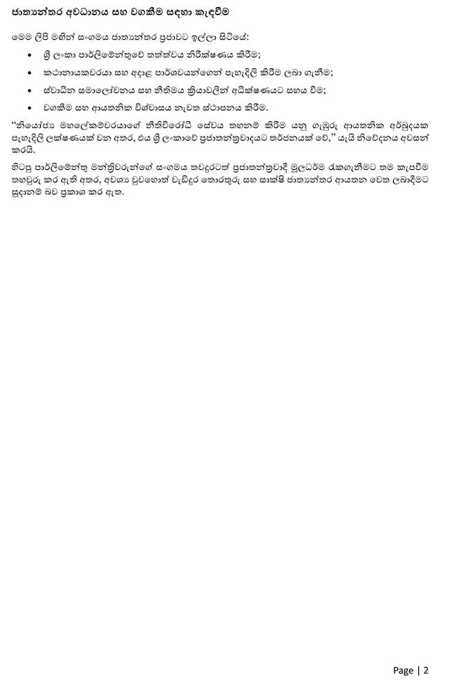 ශ්රී ලංකාවේ හිටපු පාර්ලිමේන්තු මන්ත්රීවරුන්ගේ සංගමය විසින් ප්රධාන ජාත්යන්තර ආයතන කිහිපයකට ලිපියක්